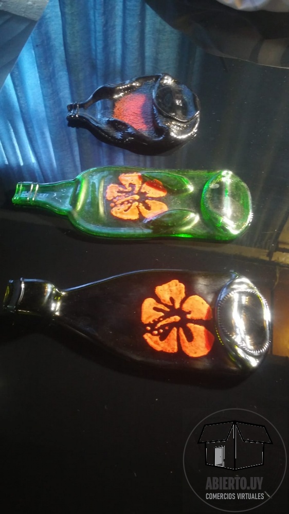BOTELLAS APLASTADAS VITROFUSION DECORATIVAS Y UTILITARIAS PARA SERVIR QUESOS, FIAMBRES ETC VARIOS COLORES Y TAMAÑOS CONSULTE NO MOLESTA