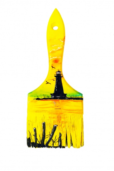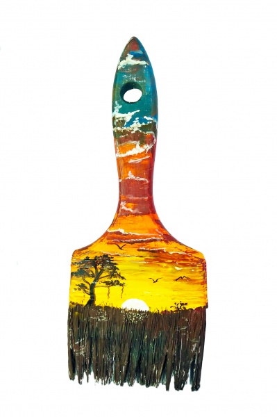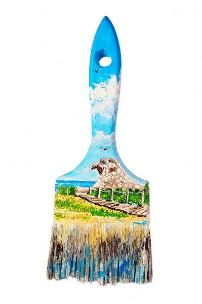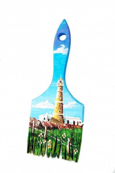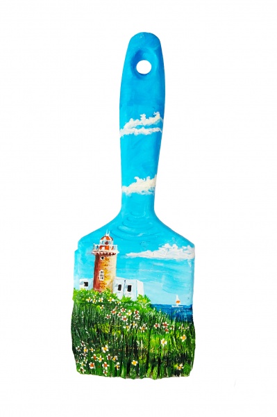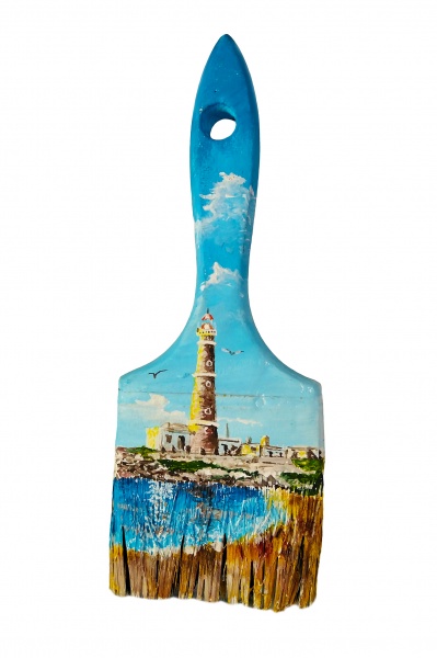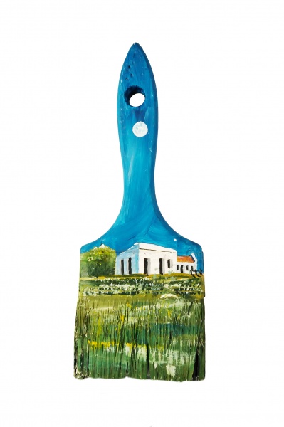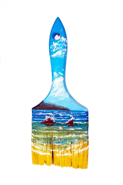 Pintado a mano con pintura acrilica sobre pincel de madera.
