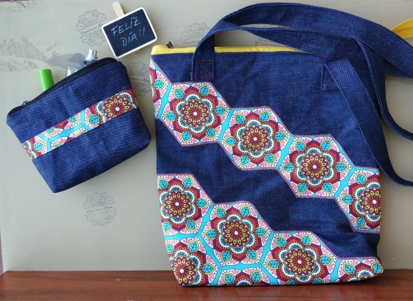 Bolsos de jeans. De hombro y para cruzar  Con bolsillo externo e interno con cierre. Forrados en algodón